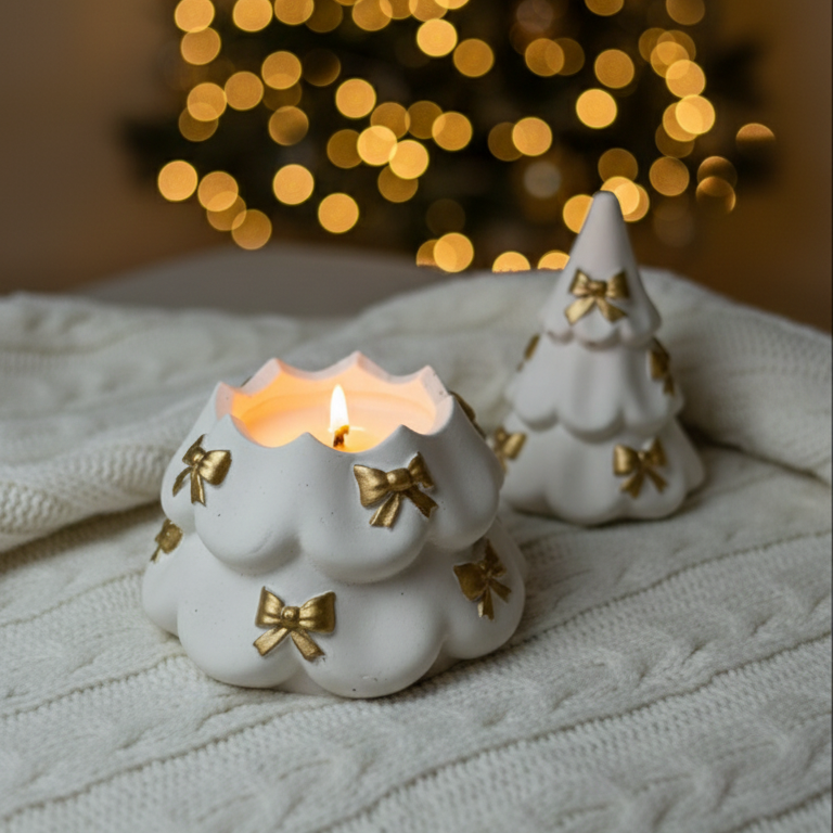 Свеча «Ёлочка» в гипсовом подсвечнике: уют зимнего леса у вас дома!