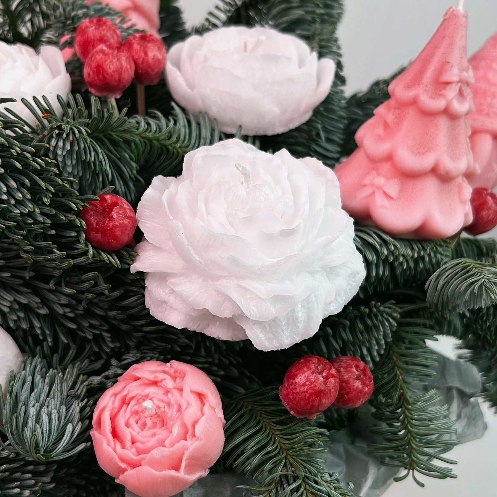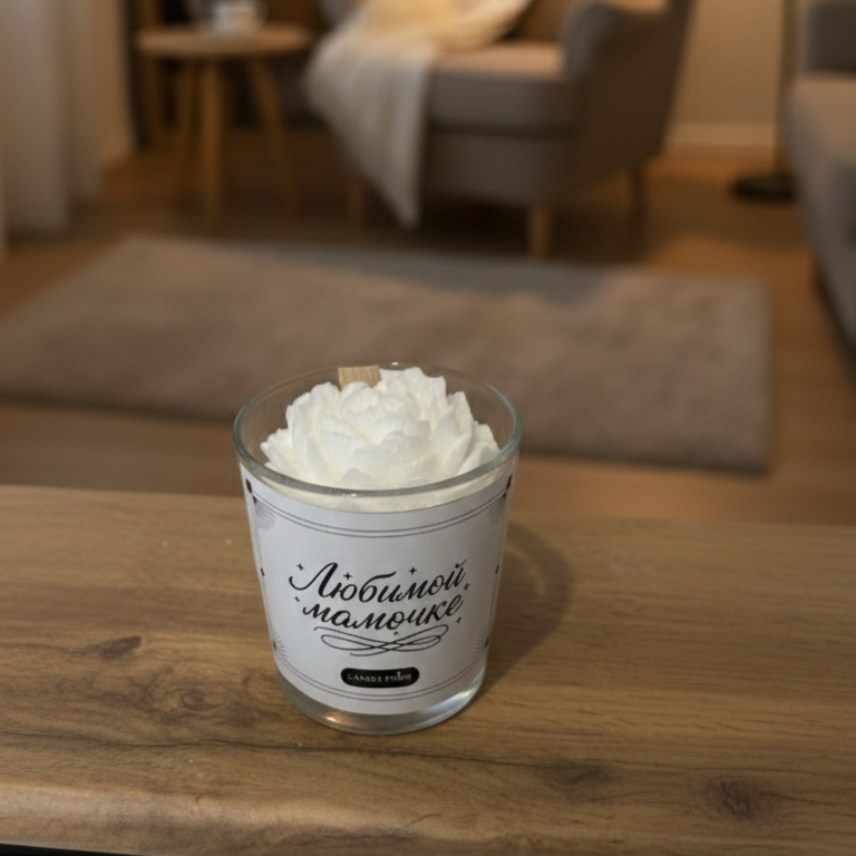 Эта свеча говорит за вас — тихо, красиво и по-настоящему сердечно. Верх свечи выполнен в виде распустившегося пиона: тонкие лепестки, мягкая форма, ощущение свежего цветка, который только что положили в воду. Когда пламя загорается, свет проходит сквозь «лепестки» и создаёт эффект живого цветка — очень утончённо и трогательно.