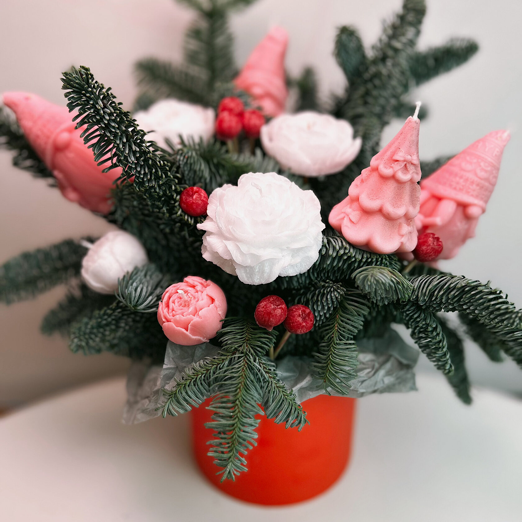 ✨ МАГИЯ СВЕТА И ПРАКТИЧНОСТЬ В отличие от обычного букета,эта композиция будет радовать вас всю зиму. А когда наступят темные вечера, вы можете зажечь свечи-гномиков, наполнив комнату теплым, живым светом и создав по-настоящему сказочную и магическую обстановку.